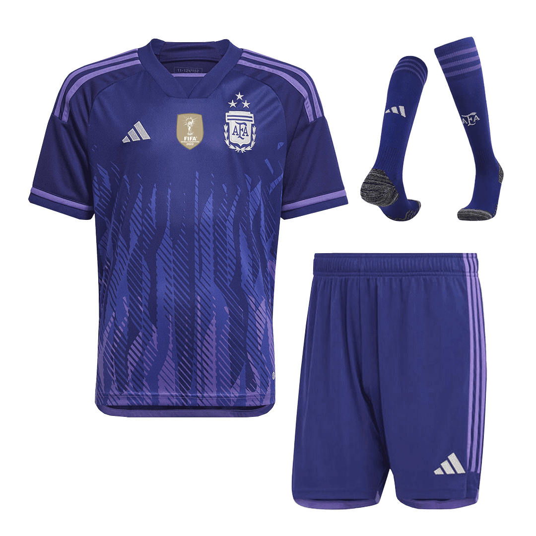 Argentina Away World Cup Kids Jerseys Full Kit 2022 - Three Stars