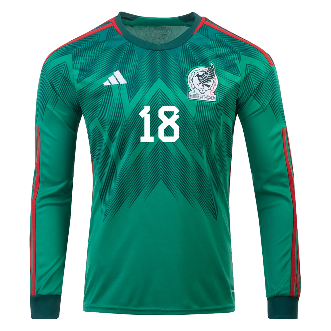 A.GUARDADO #18 Mexico Home Long Sleeve Soccer Jersey 2022